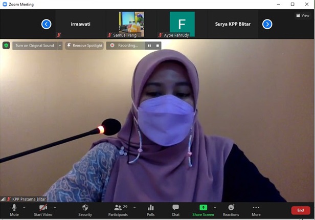Kelas pajak kali ini diikuti oleh sebanyak 34 Wajib Pajak Orang Pribadi, baik karyawan maupun usahawan. Kegiatan berlangsung selama dua jam melalui media aplikasi Zoom Meeting. Materi disampaikan oleh Tim Penyuluh KPP Pratama Blitar yang terdiri dari Fungsional Penyuluh Pajak dan Pelaksana KP2KP Wlingi.