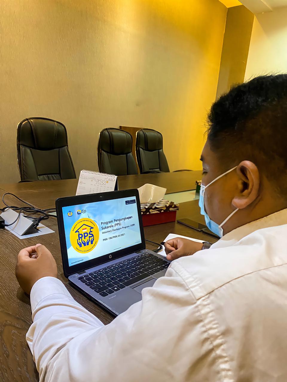 Kantor Pelayanan Pajak (KPP) Pratama Bontang menyelenggarakan Sosialisasi Program Pengungkapan Sukarela (PPS) kepada Pegawai PT Kaltim Parna Industri secara daring dari KPP Pratama Bontang, Kota Bontang, Kalimantan Timur (Senin, 13/6).