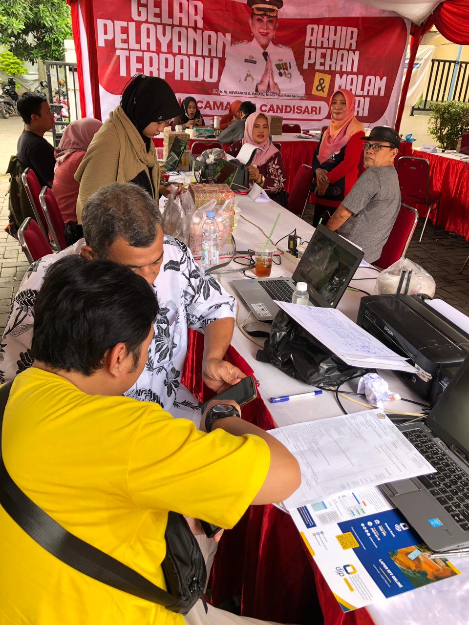 Kantor Pelayanan Pajak (KPP) Pratama Semarang Candisari berpartisipasi pada kegiatan Pelayanan Terpadu Akhir Pekan di Kantor Kecamatan Candisari untuk masyarakat sekitar yang memerlukan pelayanan selain di hari kerja pukul 07.30 hingga 12.00 WIB (Sabtu, 3/2).