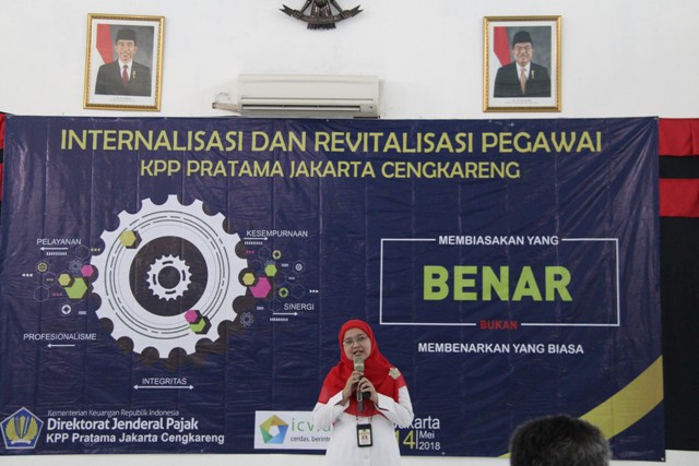 KPP Pratama Jakarta Cengkareng mengadakan acara internalisasi dan revitalisasi pegawai di ruang aula KPP Pratama Jakarta Cengkareng (Senin,14/5). Acara diadakan dan dihadiri oleh seluruh pegawai KPP Pratama Cengkareng terkecuali yang sedang melayani wajib pajak di Tempat Pelayanan Terpadu (TPT). Dalam acara tersebut, KPP Cengkareng mengundang nara sumber dari Direktorat Kepatuhan Internal dan Transformasi Sumber Daya Aparatur ( KITSDA) yaitu Dahlia, S.S.T., Ak., M.Ak. selaku Kepala Seksi Internalisasi Kepatuhan beserta timnya.