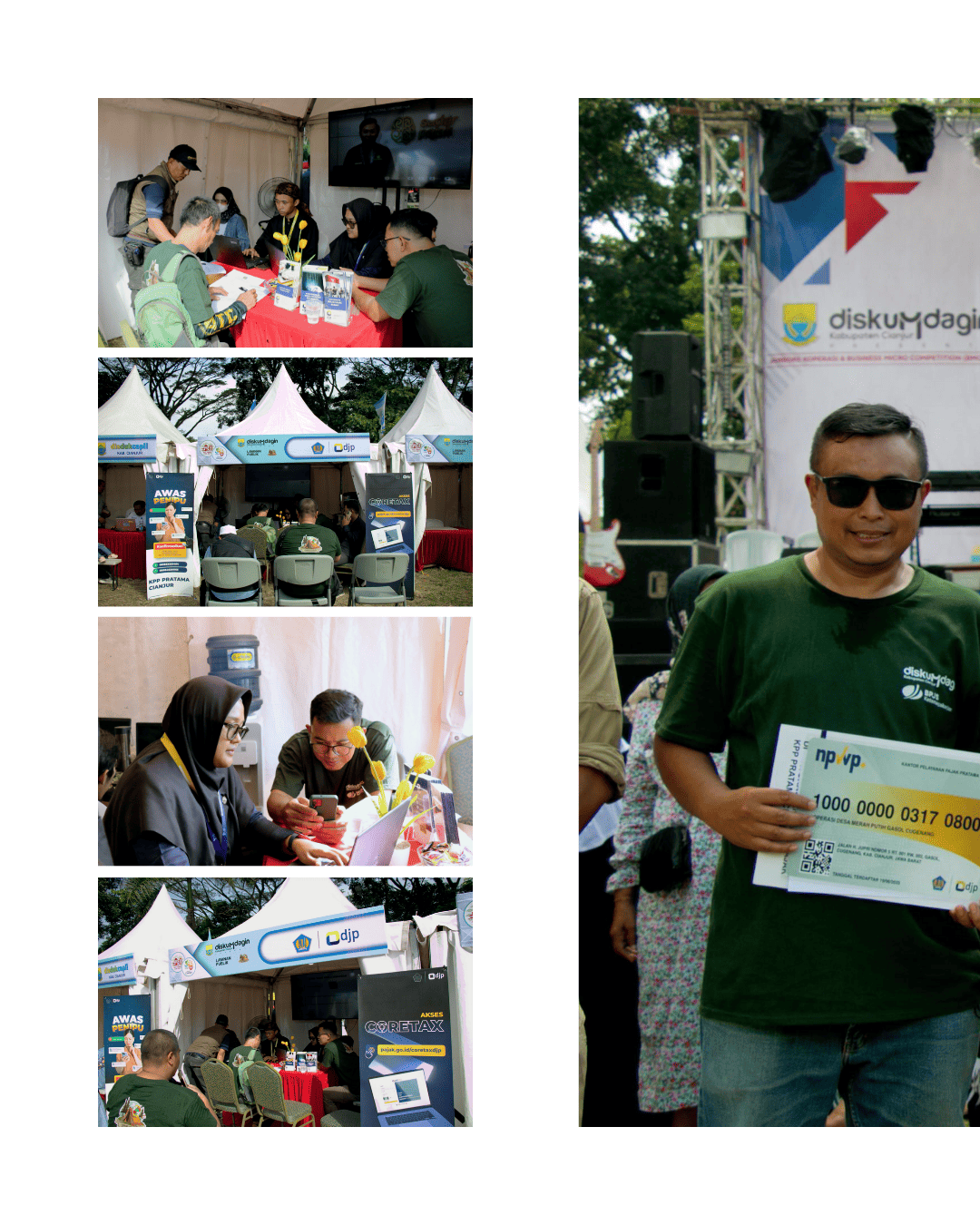 Tidak hanya melakukan penyerahan NPWP, KPP Pratama Cianjur juga membuka layanan langsung di lokasi acara. Antusiasme peserta terhadap layanan perpajakan cukup tinggi, terutama dalam pendaftaran NPWP, aktivasi akun Coretax DJP, serta permintaan kode otorisasi dan sertifikat digital. Layanan ini mempermudah para pelaku UMKM untuk mengenal dan mengakses hak serta kewajiban perpajakan secara langsung.