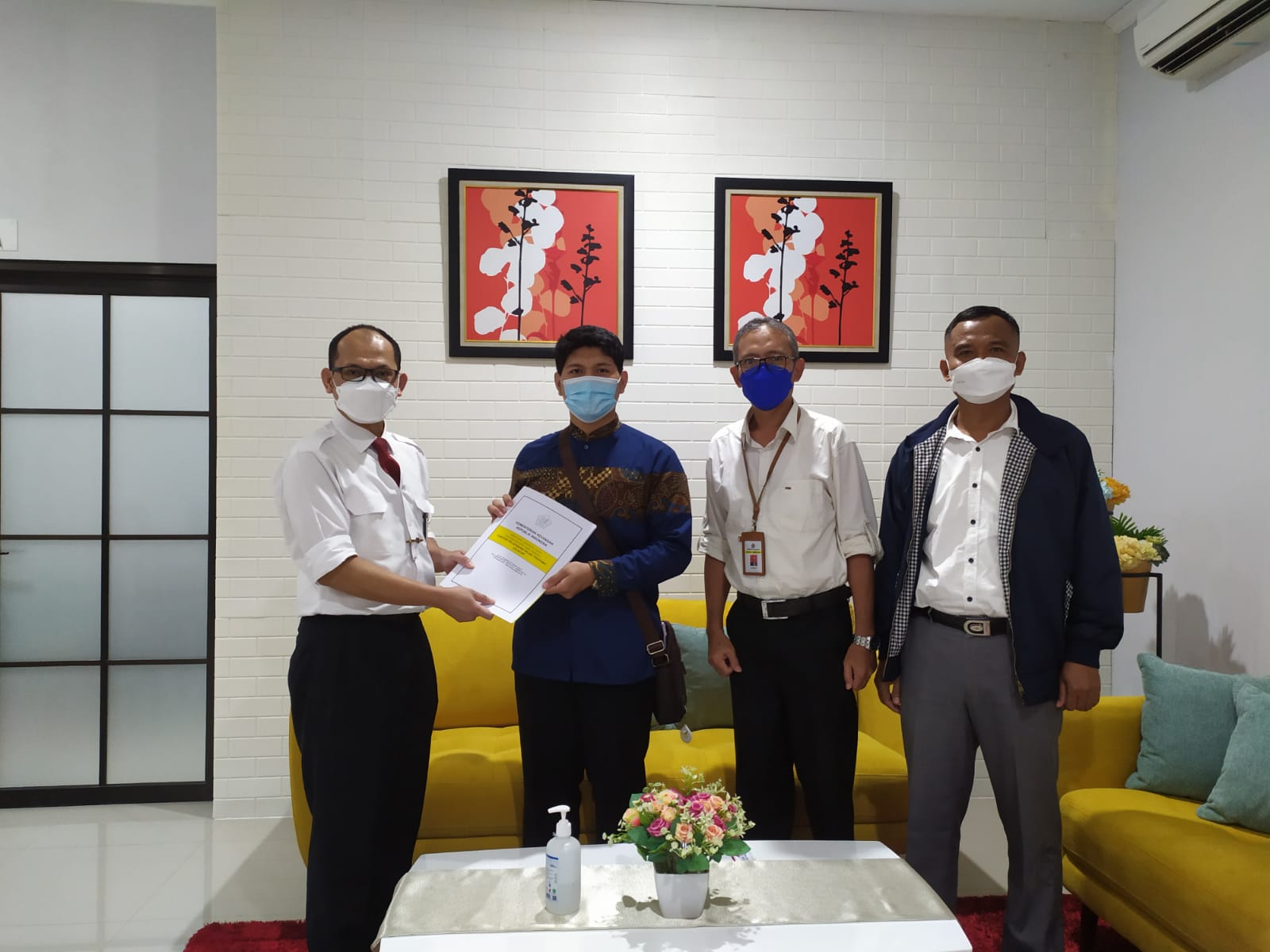 Kepala Kantor Pelayanan Pajak (KPP) Pratama Cilacap Mohamad Teguh Prasetyo menyerahkan wakaf uang kepada pengurus Pesantren Tahfizh Nurul Islam di Aula KPP Pratama Cilacap (Senin, 25/4). Wakaf uang tersebut merupakan iuran sukarela dari para pegawai di lingkungan KPP Pratama Cilacap, yang dikumpulkan kemudian diserahkan ke Pesantren Tahfizh Nurul Islam yang berlokasi di Jl Sawo Desa Tritih Lor, Kecamatan Jeruklegi guna pembangunan masjid pesantren. Kegiatan ini berlangsung pukul 13.30, disaksikan oleh para pegawai dan perwakilan dari Pesantren Nurul Islam.