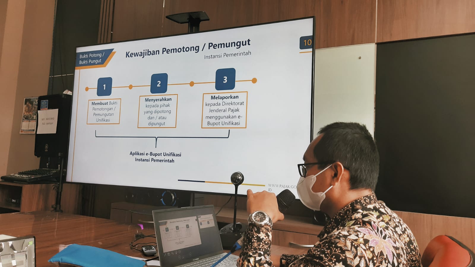 Kantor Pelayanan Pajak (KPP) Pratama Cimahi menyelenggarakan kegiatan edukasi perpajakan terkait e-Bupot Unifikasi Instansi Pemerintah di ruang rapat Kantor Badan Keuangan dan Aset Daerah (BKAD) Kabupaten Bandung Barat (Selasa, 21/9). Kegiatan yang digelar selama tiga hari berturut-turut ini diikuti oleh para Bendahara Instansi Pemerintah Kabupaten Bandung Barat.