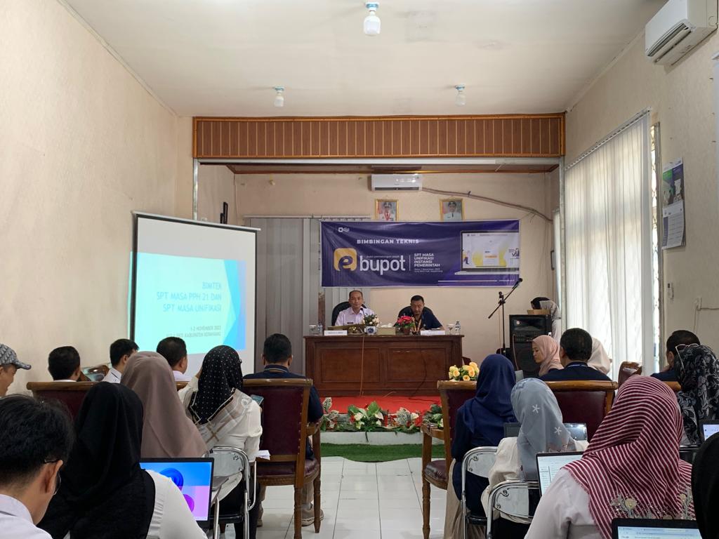 Kantor Pelayanan Pajak (KPP) Pratama Curup melakukan kegiatan Bimbingan Teknis (Bimtek) Bukti Pemotongan Pajak e-Bupot Surat Pemberitahuan (SPT) Masa Unifikasi Instansi Pemerintah kepada bendahara dari instansi kantor pemerintahan, bendahara desa dan bendahara kecamatan yang ada di wilayah Kabupaten Kepahiang yang dilaksanakan di Aula Kantor Badan Keuangan Daerah (BKD) Kabupaten Kepahiang berlokasi di Desa Pelangkian Kecamatan Kepahiang Kabupaten Kepahiang, Bengkulu (Rabu, 1/11).