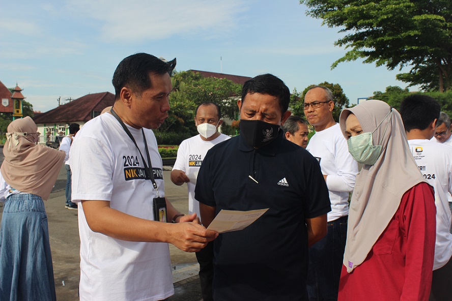 Kampanye dimulai dengan jalan sehat dari kantor KPP Pratama Demak sampai dengan alun-alun Demak, kemudian petugas berkeliling alun-alun untuk membagikan leaflet yang berisi informasi tentang penyatuan NPWP ke dalam NIK dan tata cara validasi NIK menjadi NPWP.