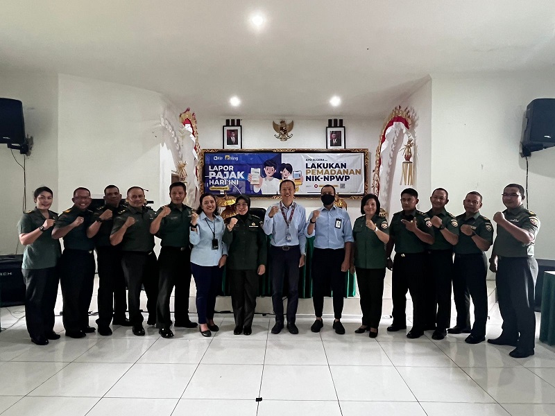 Kantor Pelayanan Pajak (KPP) Pratama Denpasar Barat menggelar edukasi pemadanan Nomor Induk Kependudukan (NIK) menjadi Nomor Pokok Wajib Pajak (NPWP) di Komando Daerah Militer (Kodam) IX Udayana di Denpasar (Rabu, 8/2). Kegiatan ini dihadiri oleh Wakil Kepala Keuangan Kodam IX Udayana juga diikuti oleh para anggota TNI di lingkangan Kodam IX Udayana.