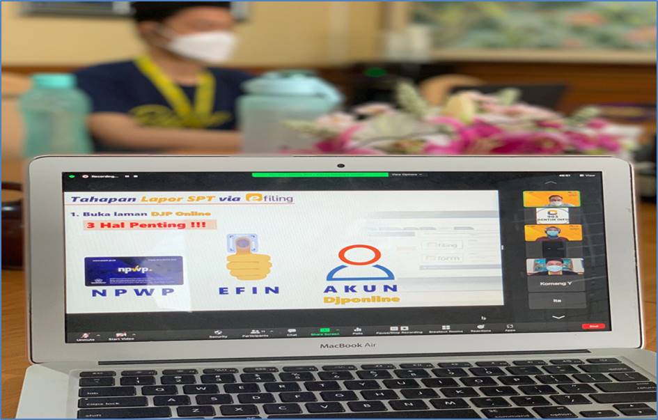 Kantor Pelayanan Pajak (KPP) Pratama Denpasar Timur semakin gencar melakukan kegiatan sosialisasi terkait tata cara penyampaian SPT Tahunan WP orang pribadi. Kegiatan sosialisasi dilaksanakan secara daring melibatkan asisten penyuluh pajak dan para relawan pajak dengan memanfaatkan aplikasi zoom meeting. Kegiatan ini dilaksanakan di ruang rapat KPP Pratama Denpasar Timur (Kamis, 24/3).