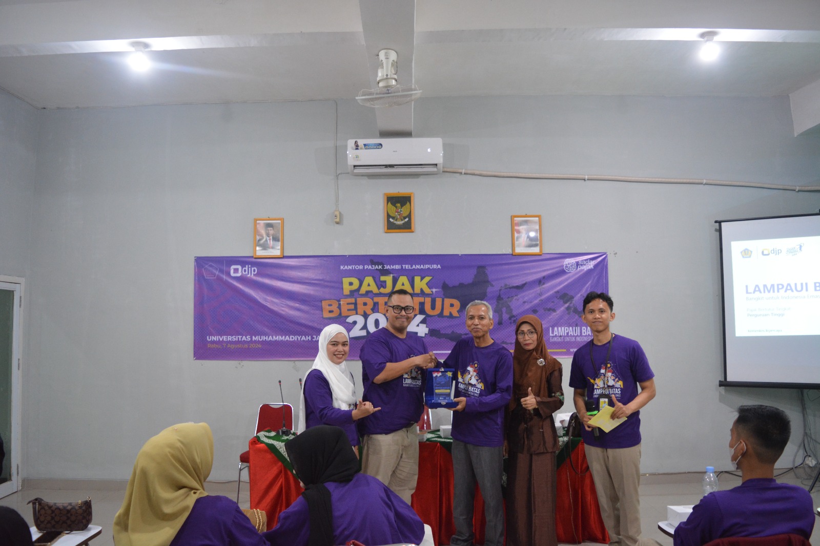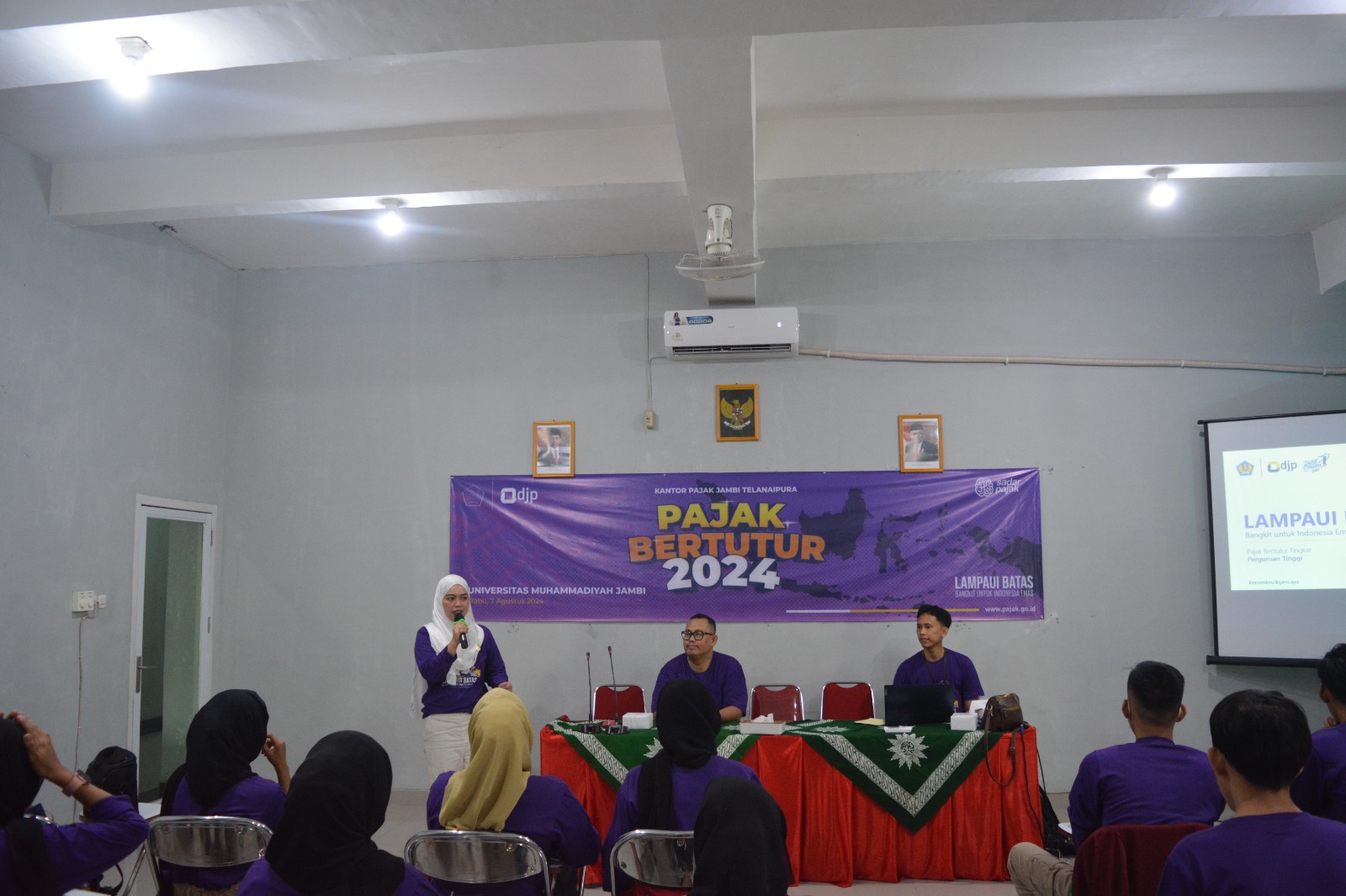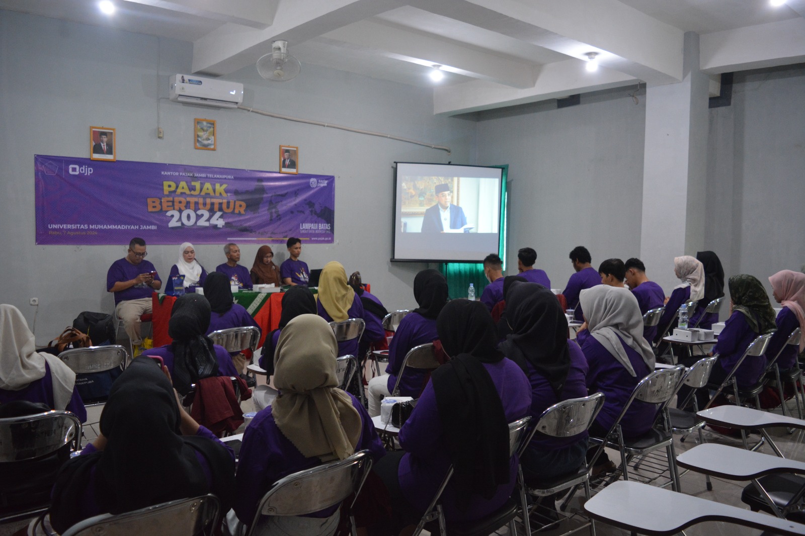 Dalam rangka menanamkan pengetahuan pajak sejak dini, Kantor Pelayanan Pajak (KPP) Pratama Jambi Telanaipura melaksanakan kegiatan Pajak Bertutur Tahun 2024 dengan tema "Lampaui Batas, Bangkit Untuk Indonesia Emas." Acara ini diselenggarakan di Universitas Muhammadiyah Jambi dan diikuti oleh 30 mahasiswa dari Fakultas Ekonomi dan Bisnis Universitas Muhammadiyah Jambi (Rabu, 7/8).