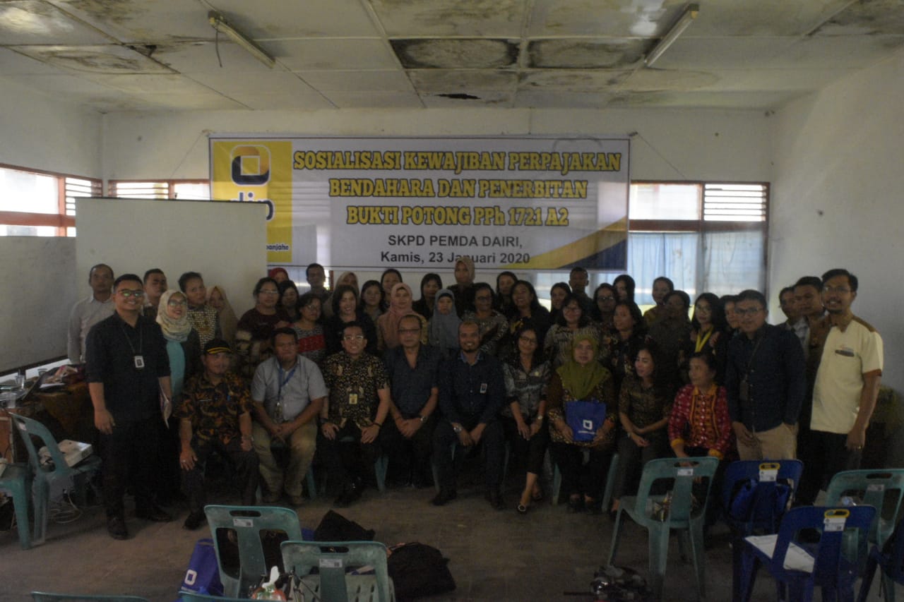 KPP Pratama Kabanjahe dan KP2KP Sidikalang mengadakan kegiatan penyuluhan perpajakan dengan tema Edukasi dan Dialog Kewajiban Perpajakan Bendahara kepada para bendahara SKPD se-Kabupaten Dairi dan Penerbitan Bukti Potong 1721 A2 di Aula KP2KP Sidikalang, Dairi (Kamis, 23/1).