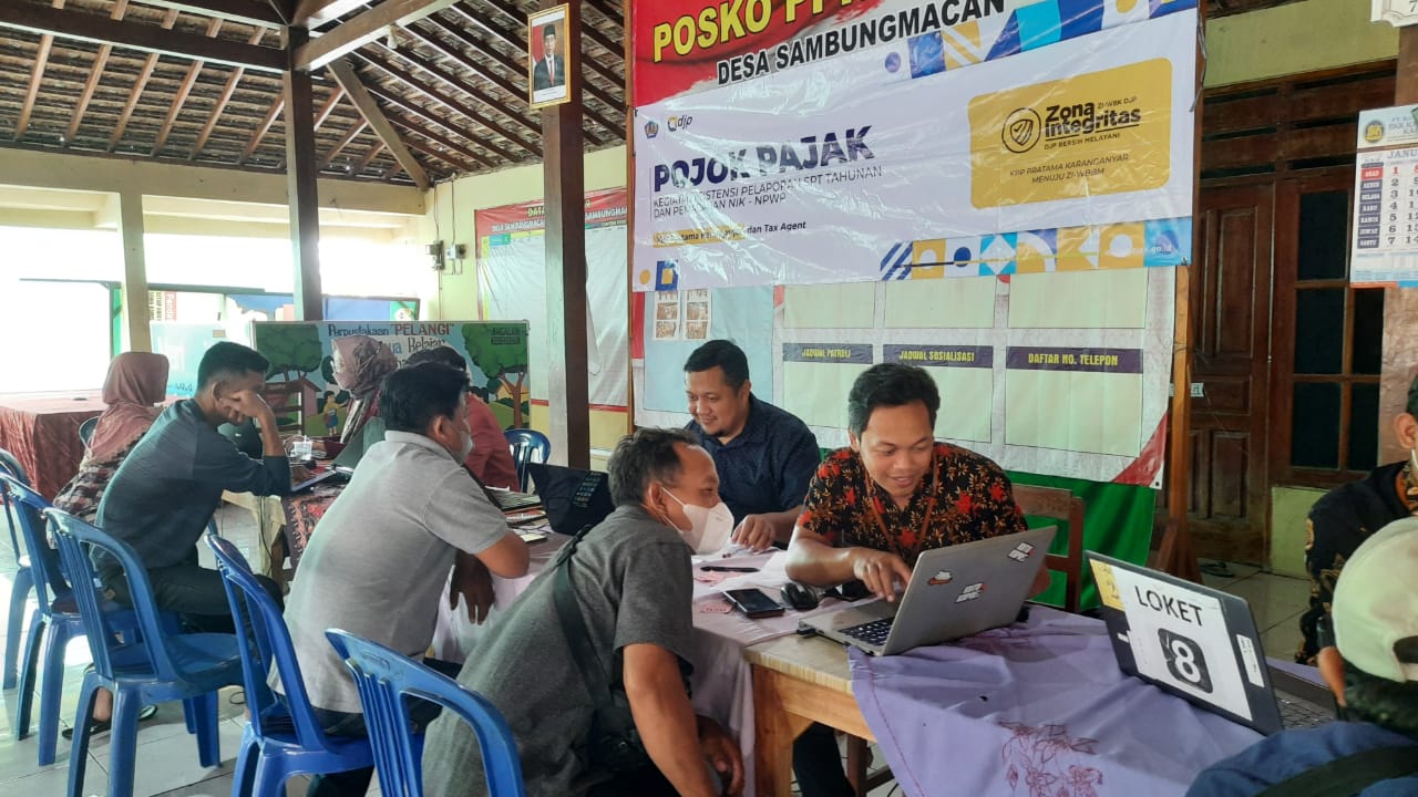 Kantor Pelayanan Pajak (KPP) Pratama Karanganyar kembali membuka pojok pajak asistensi pengisian SPT Tahunan di Kantor Balai Desa Sambungmacan, Kabupaten Sragen (Selasa, 21/2). Pojok pajak dibuka mulai pukul 09.00 WIB dan diakhiri pukul 13.00 WIB. Kegiatan ini merupakan kerjasama antara KPP Karanganyar dengan Tax Agent Desa Sambungmacan.