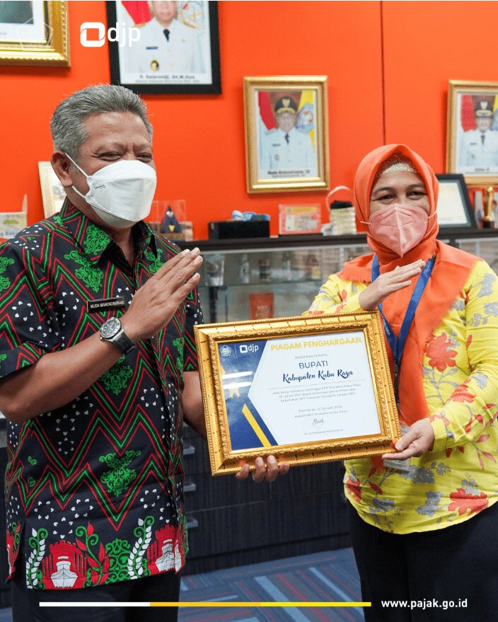 Pemberian penghargaan diberikan atas kontribusi dan kerja sama yang diberikan oleh pemerintah kabupaten Kubu Raya sehingga di tahun 2021 KPP Pratama Kubu Raya dapat mencapai penerimaan pajak dan kepatuhan SPT Tahunan melebihi target yang telah ditetapkan. Penghargaan disampaikan langsung oleh Kepala KPP Pratama Kubu Raya Rr. Sri Pahlawati Hadiningrum.
