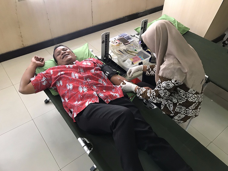 Donor darah diikuti segenap pegawai baik organik maupun non organik. Ada beberapa tahapan yang harus dilalui para calon pendonor yaitu mengisi formulir pendaftaran dan menyertakan kartu donor (apabila ada) kemudian dilanjutkan dengan pengecekan berat badan, tekanan darah, hemoglobin (HB), serta golongan darah. Tak kurang dari 22 pegawai tercatat dalam daftar registrasi peserta donor.