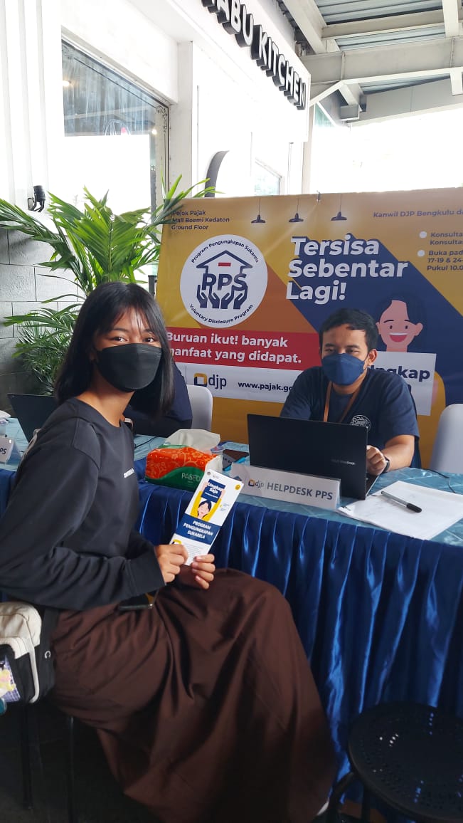 Mengingat Program Pengungkapan Sukarela (PPS) yang akan berakhir, Kantor Wilayah (Kanwil) DJP Bengkulu dan Lampung bersama Kantor Pelayanan Pajak (KPP) Madya Bandar Lampung menyelenggarakan pojok pajak PPS di Mall Boemi Kedaton, Kota Bandar Lampung (Jumat, 17/06). Wajib pajak dapat berkonsultasi mengenai PPS pada pojok pajak di selasar Mall.