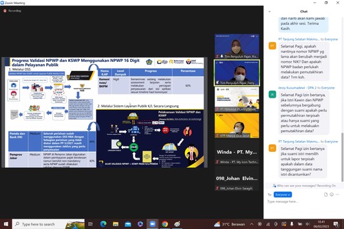 Kantor Pelayanan Pajak (KPP) Madya Dua Jakarta Utara melakukan sosialisasi Implementasi Nomor Induk Kependudukan (NIK) menjadi Nomor Pokok Wajib Pajak (NPWP) melalui media aplikasi Zoom (Senin, 6/2).