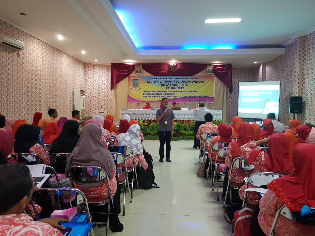KPP Pratama Mojokerto bersama dengan Pemerintah Kota Mojokerto bersinergi mengawasi penerimaan negara dengan mengadakan Rapat Koordinasi Evaluasi Penatausahaan Keuangan Daerah Kota Mojokerto tahun 2019 bertempat di Astoria Conventon Hall, Mojokerto (Kamis, 17/10).