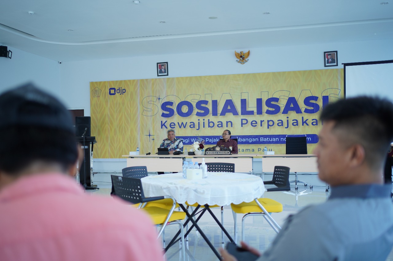 Tim penyuluh pajak Kantor Pelayanan Pajak (KPP) Pratama Palu dan Badan Pendapatan Daerah (Bapenda) Donggala bekerja sama melaksanakan kegiatan sosialisasi pada wajib pajak di bidang pertambangan terkait pajak pusat dan pajak daerah (Kamis, 9/6). Acara ini dilangsungkan secara tatap muka di ruang aula KPP Pratama Palu, Kota Palu.