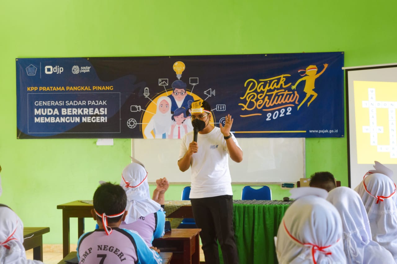 Kantor Pelayanan Pajak (KPP) Pratama Pangkal Pinang turut meramaikan gelaran Pajak Bertutur yang diadakan setiap tahun oleh Direktorat Jenderal Pajak, Pangkalpinang, Kep. Bangka Belitung (Kamis, 18/8). Acara yang mengambil tempat di Sekolah Menengah Pertama (SMP) Negeri 7 Kota Pangkal Pinang ini diramaikan oleh siswa dan siswi kelas 8 yang antusias untuk mempelajari materi pengenalan pajak.