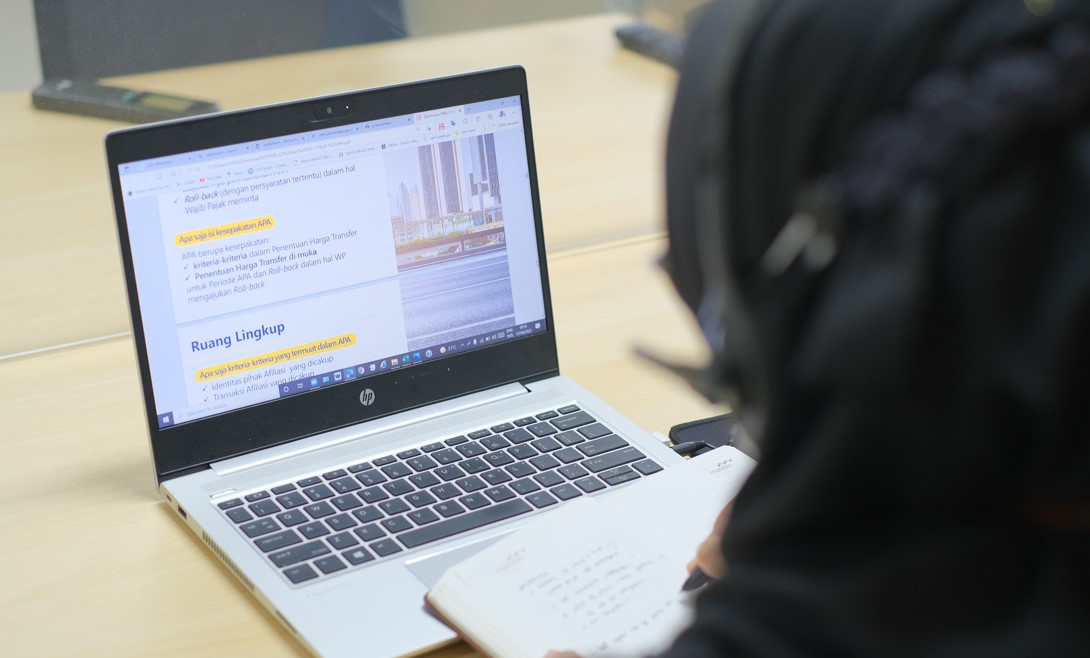 Selanjutnya narasumber memberikan paparan materi terkait Advance Pricing Agreement (APA). Diawali dengan penjelasan pencegahan dan penanganan sengketa perpajakan. Perpajakan Internasional dibagi menjadi dua, yaitu pencegahan sengketa transfer pricing (Dispute Prevention) dan penanganan sengketa (Dispute Settlement). Pencegahan sengketa dikategorikan menjadi dua, yaitu Unilateral APA untuk lingkup domestik berupa Wajib Pajak mengajukan permohonan dan membuat kesepakatan dengan DJP. Kemudian Bilateral APA untuk lingkup Internasional biasanya terkait dengan transaksi dengan induk atau afiliasi di luar negeri yang diikuti dengan perundingan antara DJP dengan otoritas perpajakan di mitra negara bersangkutan. Penanganan sengketa untuk hal yang sudah menjadi sengketa, meliputi keberatan dan banding yang melingkupi domestik, sedangkan Mutual Agreement Procedure (MAP) melingkupi internasional.