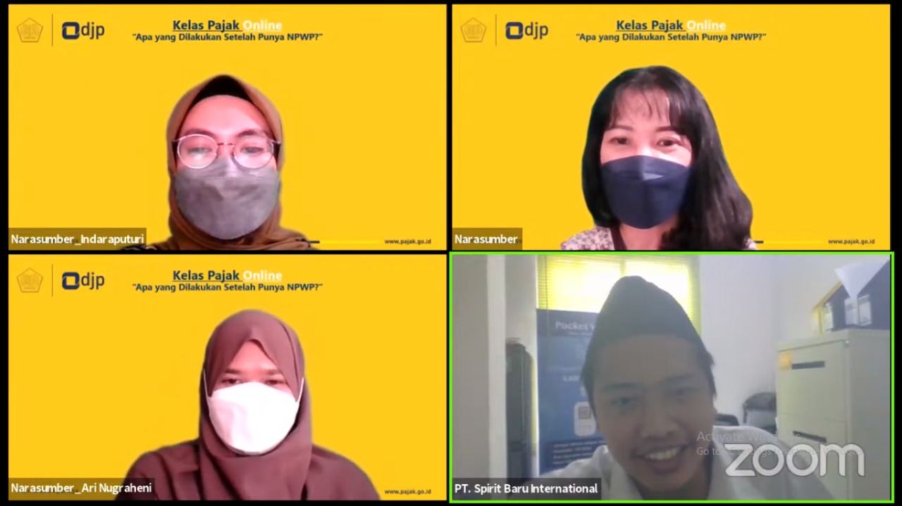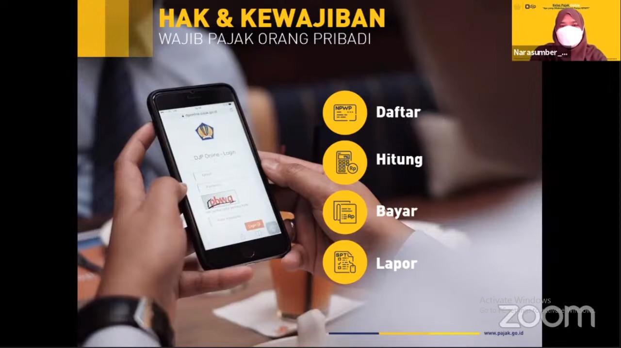 Acara kelas pajak secara daring dibuka oleh Indaraputuri Nurmasruri sebagai moderator. Kemudian dilanjutkan dengan penyampaian materi oleh Ari Nugraheni dan Christy Linaria sebagai narasumber yang secara bergantian menyampaikan seputar hak dan kewajiban Wajib Pajak Orang Pribadi, cara pembuatan kode billing secara mandiri melalui akun djponline dan aplikasi M-Pajak hingga cara membayar pajak terutang. Di akhir acara, dilakukan sesi tanya jawab antara peserta dengan narasumber seputar materi yang diberikan.