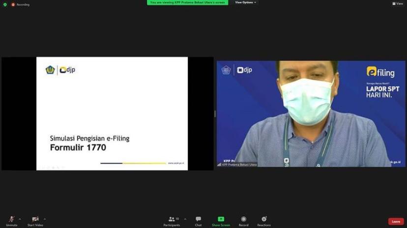 Kantor Pelayanan Pajak (KPP) Pratama Bekasi Utara menggelar Kelas Pajak untuk membahas Pengisian Laporan (Surat Pemberitahuan) SPT Tahunan Wajib Pajak Orang Pribadi di Kota Bekasi (Kamis, 29/6).