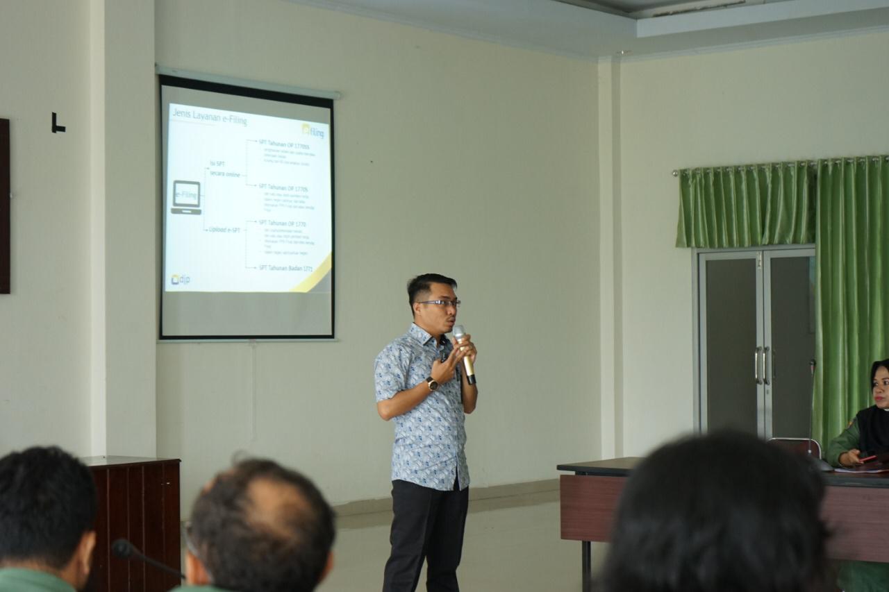 Kantor Pelayanan Pajak (KPP) Pratama Kendari mengadakan Edukasi Pengisian SPT Tahunan Wajib Pajak Orang Pribadi melalui e-Filing di Aula Dinas Kesehatan (Dinkes) Provinsi Sulawesi Tenggara (Kamis, 27/2).