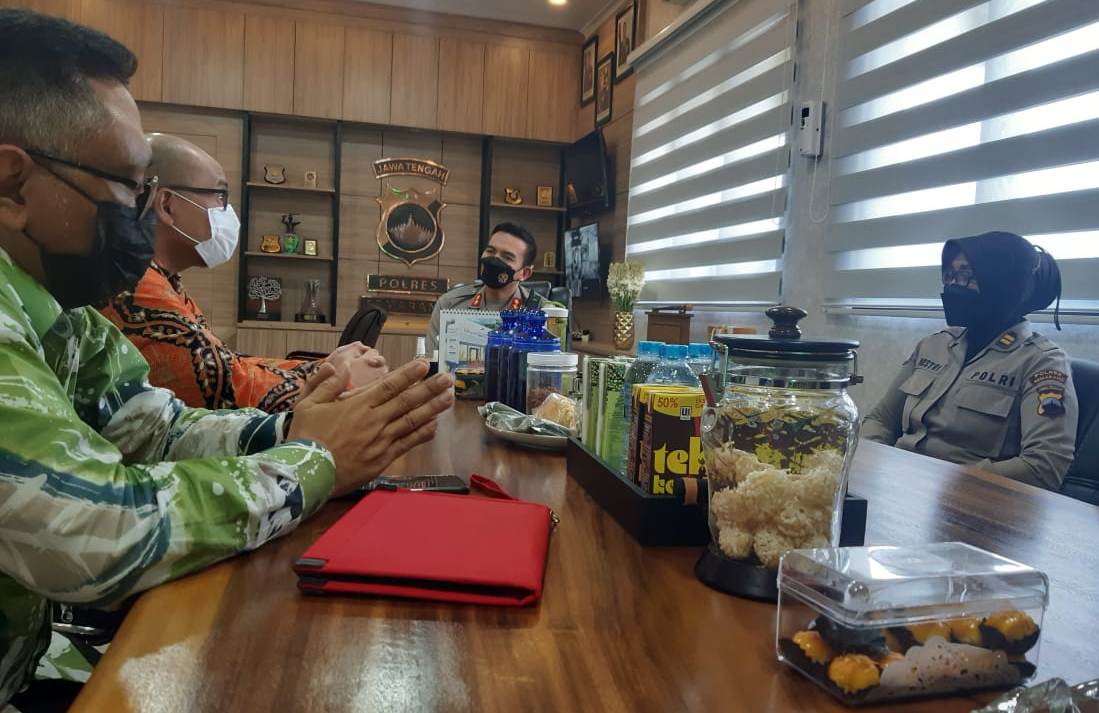 Kepala Kantor Pelayanan Pajak (KPP) Pratama Salatiga Krisnawiryawan Wisnu Hananto melakukan audiensi dengan Kepala Polisi Resort (Polres) Semarang AKBP Yovan Fatika H.A secara luring dengan menerapkan protokol kesehatan di Jl. Gatot Subroto.85, Tarubudaya, Bandarjo, Ungaran Barat, Ungaran (Selasa, 18/1).