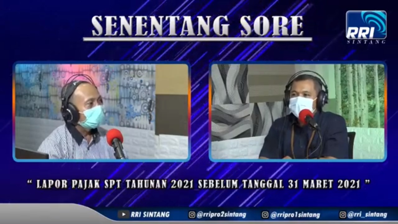 KPP Pratama Sintang bersama RRI Sintang melaksanakan siaran langsung radio dan youtube dengan judul Senentang Sore - Lapor Pajak SPT Tahunan 2021 Sebelum Tanggal 31 Maret 2021.
