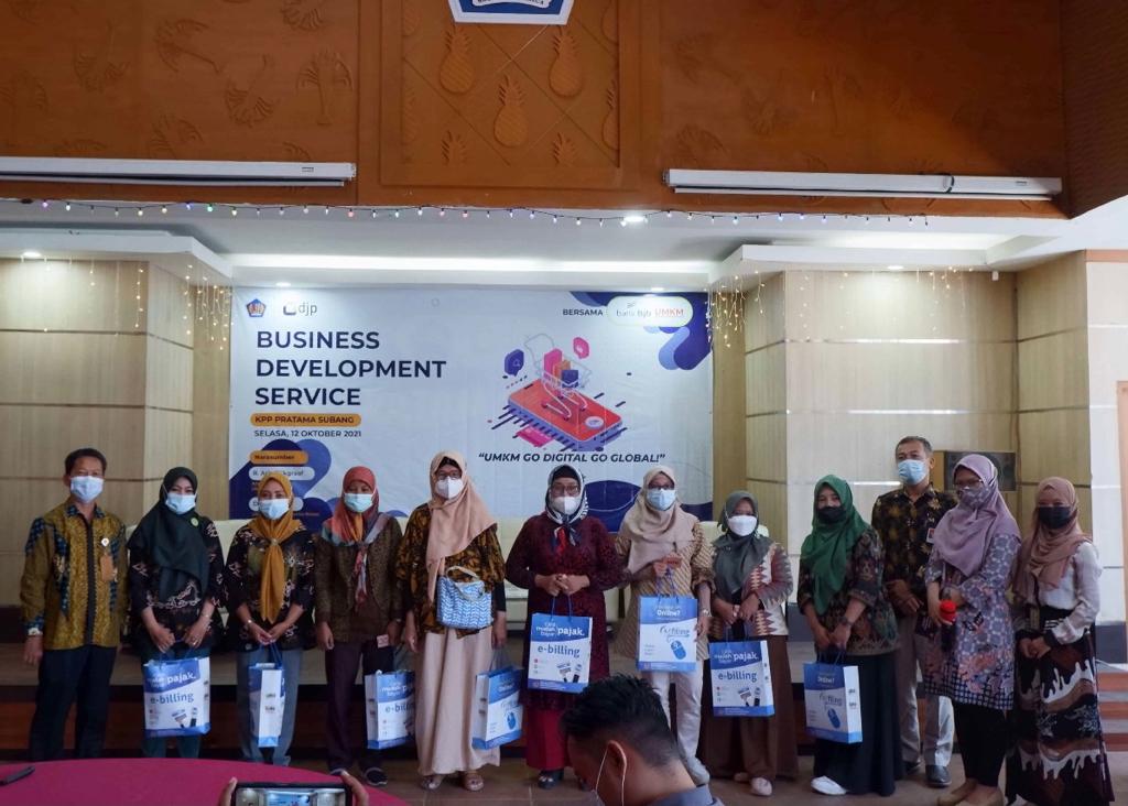 Kantor Pelayanan Pajak (KPP) Pratama Subang menyelenggarakan Bussines Development Services (BDS) yang dihadiri oleh 31 pelaku Usaha Mikro Kecil Menengah (UMKM) dengan tema “UMKM Go Digital Go Global” yang diselenggarakan di Aula KPP Pratama Subang. Kegiatan ini diselenggarakan dengan menggandeng narasumber dari pendiri UMKM Serba Nanas Alam Sari yaitu Bapak D. Ade Fatas dan Bank Jawa Barat (BJB) Unit Subang yaitu R. Aris Dijkgraaf.