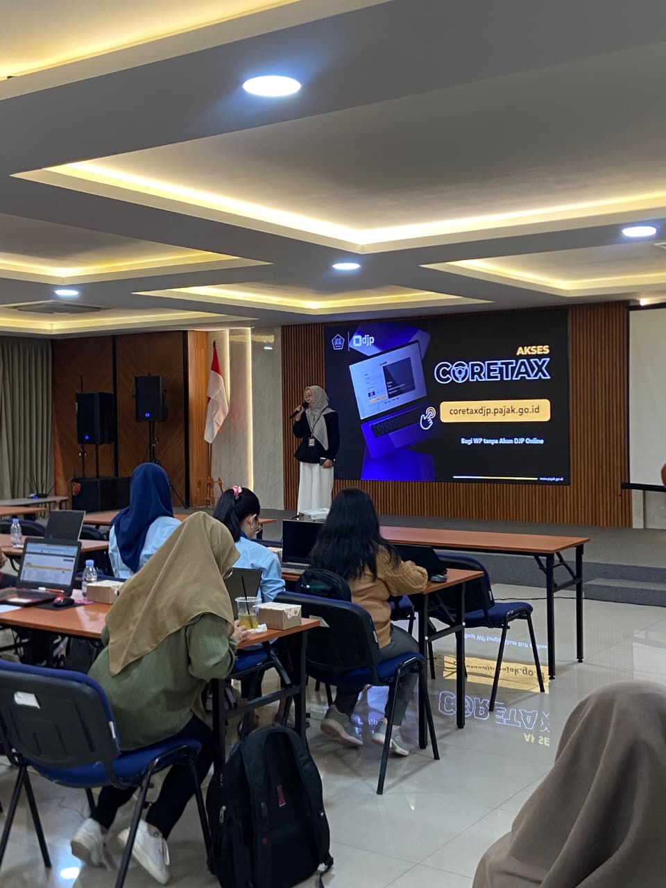 Materi utama disampaikan oleh Ayu Deasy Arzia yang memaparkan tata cara pengisian SPT Tahunan melalui Coretax DJP, dilanjutkan dengan penjelasan teknis dari Rany Mila Rahmawati dan overview pelaporan SPT Tahunan Badan oleh Achmad Fudholi. Peserta dijelaskan mengenai periode pembukuan yang sudah mendukung pelaporan melalui Coretax DJP, termasuk bagi wajib pajak dengan periode khusus September hingga Oktober.