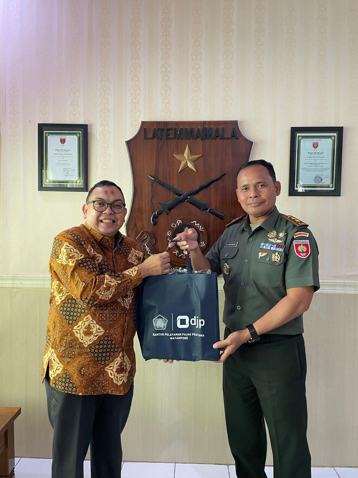 Dalam rangka memperkuat kerja sama antarlembaga dan mendorong kepatuhan perpajakan, Kantor Pelayanan Pajak (KPP) Pratama Watampone melakukan kunjungan kerja ke Markas Komando Distrik Militer (Kodim) 1423/Soppeng, Jl. Merdeka No. 122 Watansoppeng, Lingkungan Laburawung, Kelurahan Lapajung, Kecamatan Lalabata, Kabupaten Soppeng, Sulawesi Selatan (Jumat, 1/8).