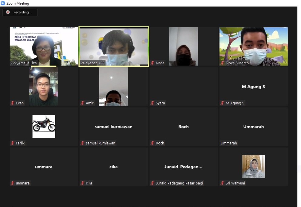 Kantor Pajak Pratama (KPP) Samarinda Ilir menyelenggarakan kegiatan Kelas Pajak dengan tema Hak dan Kewajiban Wajib Pajak Orang Pribadi yang diikuti oleh wajib pajak Program Pemulihan Ekonomi Nasional (PEN) secara daring di Kota Samarinda (Senin, 31/8). Kegiatan ini dipandu oleh dua narasumber yang merupakan Fungsional Penyuluh KPP Pratama Samarinda Ilir, yakni Bapak Muhammad Ihsan Ahmad dan Ibu Amelia Liza.
