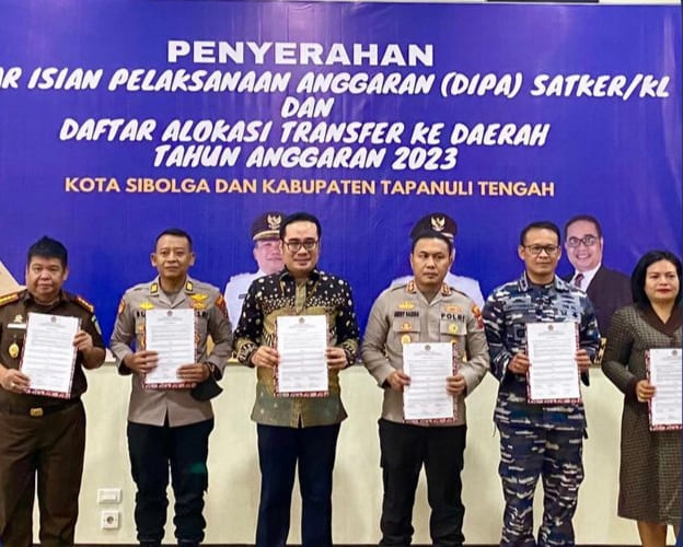 Terdapat 49 jumlah DIPA yang diserahkan dengan alokasi belanja negara TA 2023 untuk Kota Sibolga yaitu sebesar Rp1,03 triliun, yang terdiri dari belanja DIPA Kementerian Negara/Lembaga sebesar Rp553 milyar, dan Dana Transfer ke Daerah sebesar Rp476 milyar. Sedangkan untuk Kabupaten Tapanuli Tengah alokasi belanja negara TA 2023 sebesar Rp1,218 triliun, yang terdiri dari belanja DIPA Kementerian Negara/Lembaga sebesar Rp193 milyar, dan Dana Transfer ke Daerah sebesar Rp1,025 triliun.