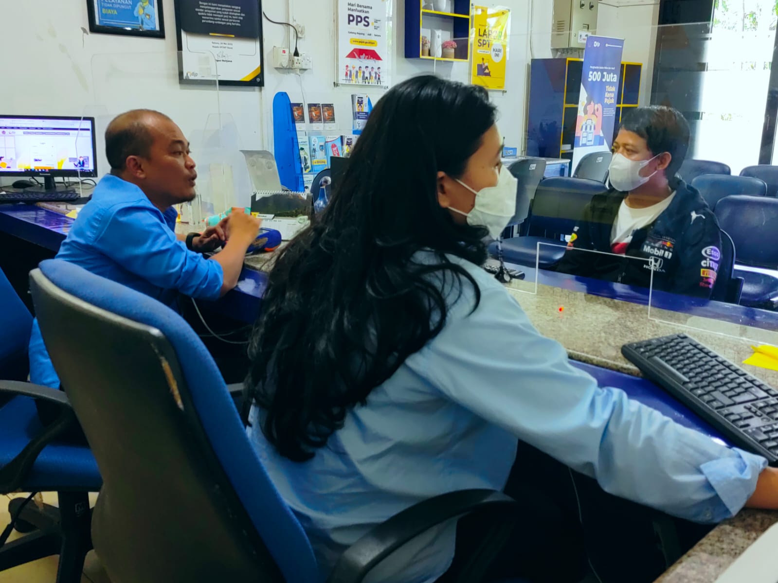 Account Representative (AR) Kantor Pelayanan Pajak (KPP) Pratama Tanjung Pinang memberikan konsultasi secara one on one kepada wajib pajak yang bergerak di bidang jasa ekspedisi bertempat di Tempat Pelayanan Terpadu (TPT) Kantor Pelayanan, Penyuluhan, dan Konsultasi Perpajakan (KP2KP) Ranai, Natuna, Kepulauan Riau (Rabu, 9/11). One on one merupakan penyampaian informasi secara perorangan.
