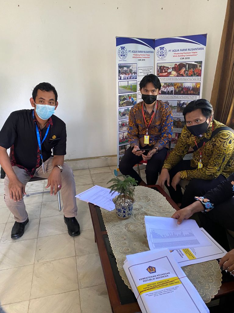 Kantor Pelayanan Pajak (KPP) Pratama Tebing Tinggi melalui Fungsional Asisten Penyuluh melakukan kunjungan kerja ke PT Aqua Farm Nusantara di Desa Naga kisar Kecamatan Pantai Cermin, Kabupaten Serdang Bedagai, Sumatera Utara (Selasa, 21/9).