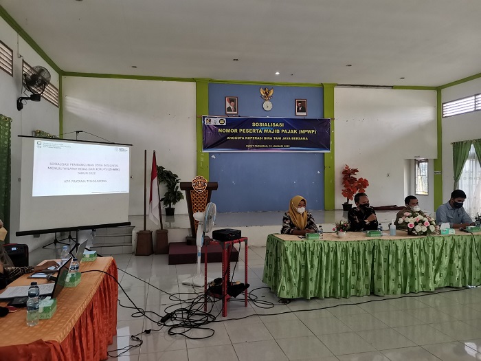 Dalam rangka memberikan edukasi perpajakan kepada para pelaku Usaha Mikro Kecil dan Menengah (UMKM), Kantor Pelayanan Pajak (KPP) Pratama Tenggarong mengirimkan tim untuk memberikan sosialisasi perpajakan terhadap seluruh anggota Koperasi Bina Tani Jaya di Desa Bukit Pariaman Kecamatan Tenggarong Seberang, Kabupaten Kutai Kartanegara, Kalimantan Timur (Selasa, 18/1).