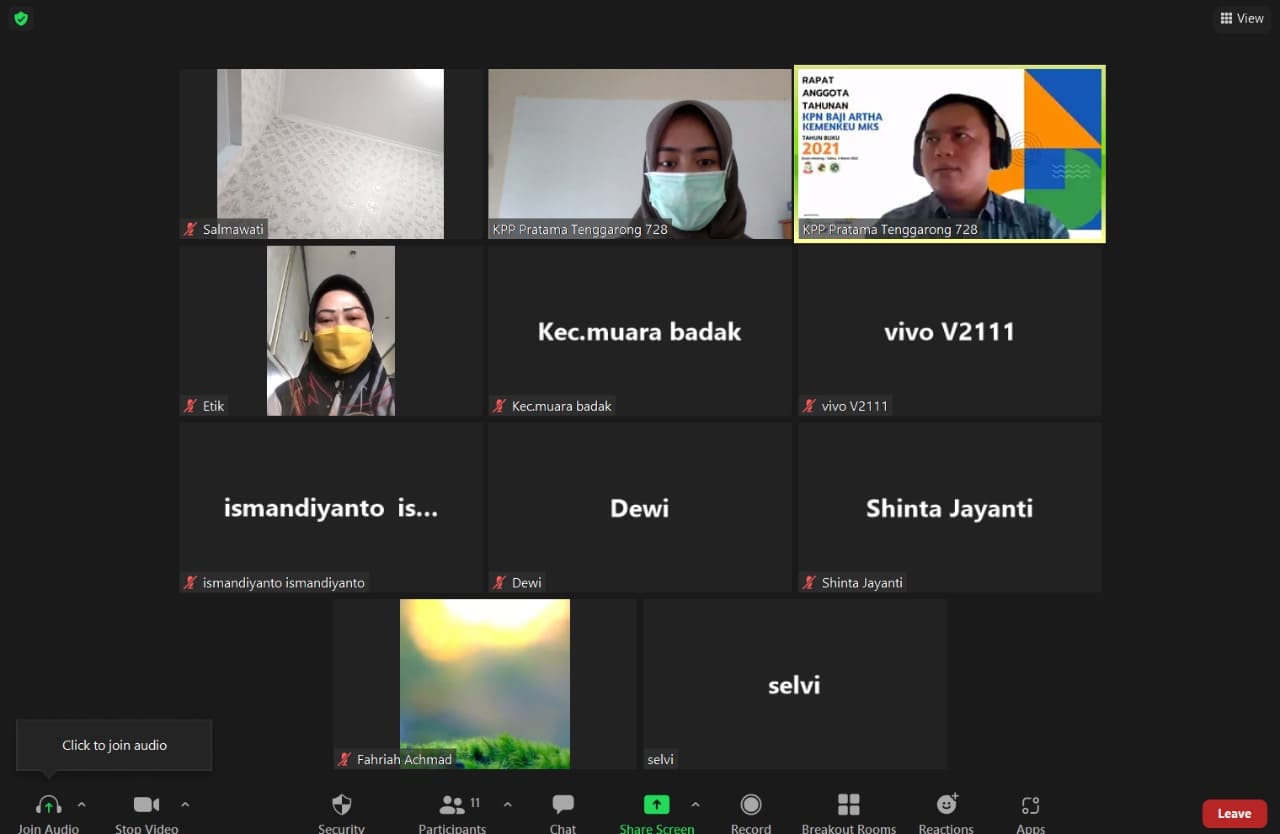 Kantor Pelayanan Pajak (KPP) Pratama Tenggarong menggelar kegiatan sosialisasi dan edukasi mengenai pelaporan Surat Pemberitahuan (SPT) Tahunan Orang Pribadi secara daring melalui aplikasi Zoom Clouds Meeting di Kantor KPP Pratama Tenggarong, Kab. Kutai Kartanegara (Jumat, 25/3).