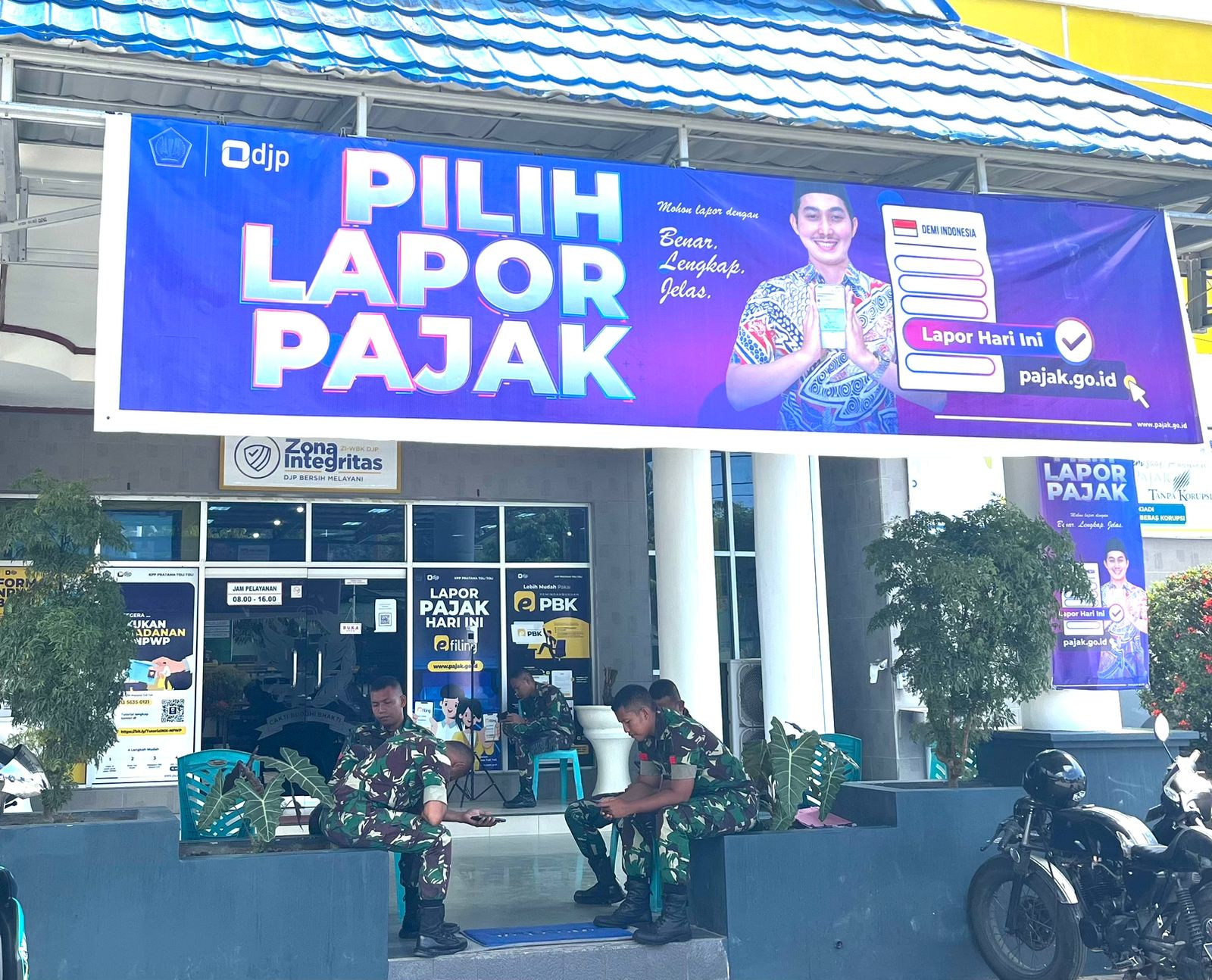 Kedatangan anggota TNI ini tentu bukan tanpa alasan. Mereka mendatangi KPP Pratama Tolitoli untuk melakukan pemadanan Nomor Induk Kependudukan (NIK) menjadi Nomor Pokok Wajib Pajak (NPWP) serta melaporkan Surat Pemberitahuan (SPT) Tahunan.