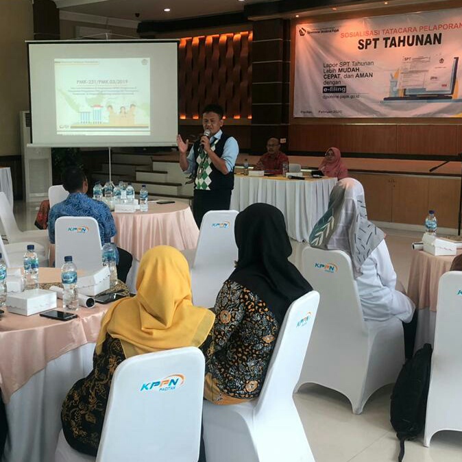 Bertempat di aula lantai 2 KPPN Pacitan, KPP Pratama Ponorogo memenuhi undangan KPPN Pacitan untuk menjadi narasumber dalam acara Sosialisasi Tata Cara Pelaporan SPT Tahunan melalui e-Filing (Rabu, 12/2). Acara ini diikuti oleh bendahara dan operator satuan kerja lingkup bayar KPPN Pacitan.