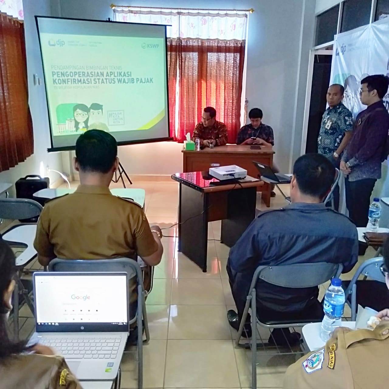 Kanwil DJP Sumut II menggelar rangkaian kegiatan Bimbingan Teknis Pengaplikasian Program Konfirmsi Status Wajib Pajak (KSWP) di Pulau Nias (Selasa, 19/02). Pulau Nias terdiri dari 4 (empat) Kabupaten dan 1 (satu) Kota yakni Kabupaten Nias, Nias Barat, Nias Utara, Nias Selatan dan Kota Gunung Sitoli. Dari kelima daerah Kabupaten/Kota ini sejumlah pejabat dan administrator masing-masing Pemda diundang untuk menghadir Bimtek KSWP yang diprakarsai oleh KPP Pratama Sibolga dan KP2KP Tanjung Balai bekerja sama dengan Kanwil DJP Sumut II, bertempat di Aula KP2KP Gunung Sitoli, Gunung Sitoli.