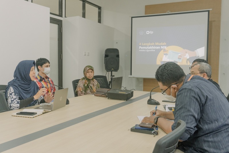 Dengan diundangkannya Peraturan Menteri Keuangan Nomor 112 Tahun 2022 tentang NPWP bagi Wajib Pajak Orang Pribadi, Wajib Pajak Badan, dan Wajib Pajak Instansi Pemerintah, petugas pajak KPP Pratama Balikpapan Timur bekerja sama dengan Dinas Sosial Kota Balikpapan untuk mengadakan sosialisasi terkait pemadanan NIK-NPWP. Kegiatan ini berlangsung di aula Dinas Sosial Kota Balikpapan (Kamis, 9/2).