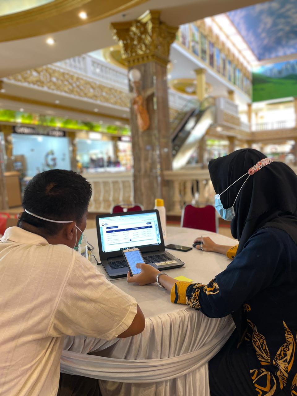 Layanan Pojok Pajak yang dibuka oleh Kantor Pelayanan Pajak (KPP) Pratama Maros di ruang lobby lantai dua Grand Mall Maros ramai dikunjungi wajib pajak (Selasa, 30/3).