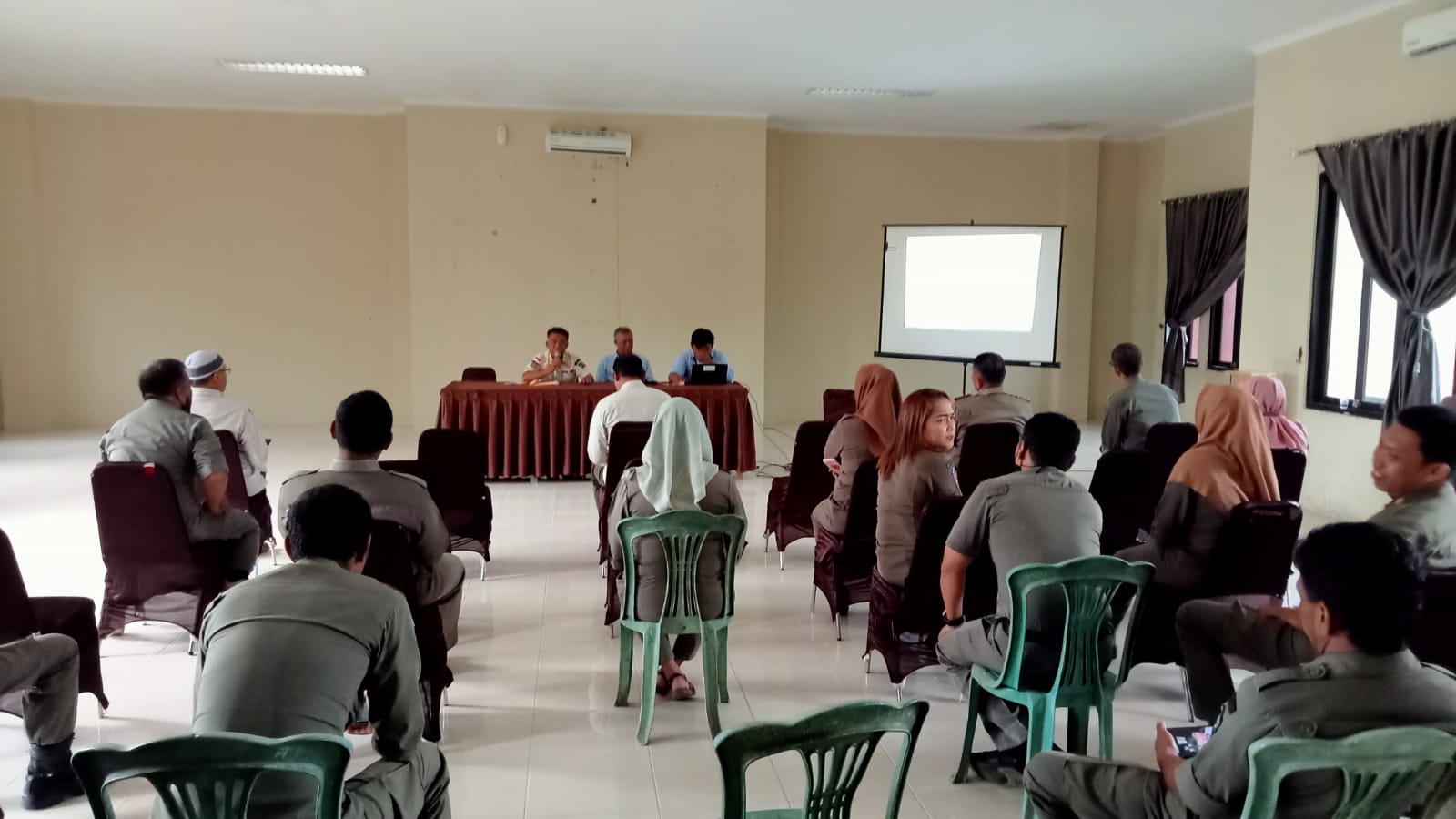 Tiga orang Pegawai Kantor Pelayanan, Penyuluhan, dan Konsultasi Perpajakan (KP2KP) Nunukan melakukan kunjungan ke Markas Komando (Mako) Satuan Polisi Pamong Praja (Satpol PP) Kabupaten Nunukan yang berlokasi di Kompleks Gedung Kantor Bupati Nunukan, Kelurahan Mansapa, Kecamatan Nunukan, Kabupaten Nunukan (Rabu, 8/2). Ketiga orang tersebut yaitu Kadri Silawane, Ajidin Nahumarury, dan Imam Syahroni.