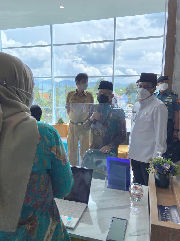 Wakil Presiden (Wapres) Republik Indonesia Ma’ruf Amin melakukan kunjungan kerja ke Mal Pelayanan Publik (MPP) Kabupaten Bandung di Munara 99 kawasan Gedung Budaya Sabilulungan (GBS) Soreang, Kabupaten Bandung, Jawa Barat (Selasa, 22/3).