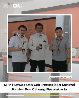 Tim Kantor Pelayanan Pajak (KPP) Pratama Purwakarta mengunjungi Kantor Cabang Pos Indonesia di Kabupaten Purwakarta untuk melakukan stok opname dan verifikasi penjualan benda meterai (Senin, 2/1).