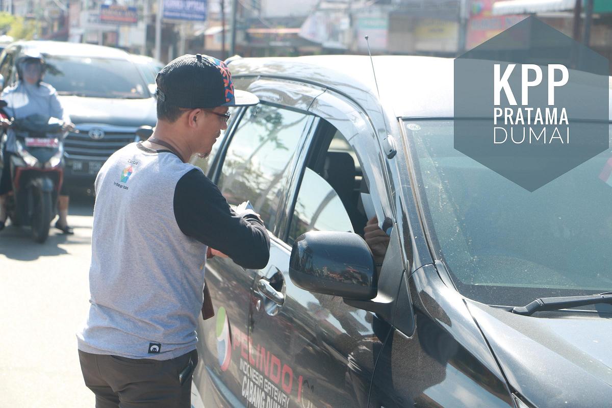 Tim KPP Pratama Dumai yang bertugas terdiri dari tiga orang eselon IV dan sebelas orang pelaksana yang langsung turun ke jalan menyelusuri perempatan lampu merah Jalan Sudirman dan Jalan Sultan Syarif Kasim yang merupakan jantung utama Kota Dumai. Tim berpencar ke empat lampu merah yang ada dan membagikan leaflet SPT Tahunan tersebut kepada para pengendara yang lewat, baik mobil maupun sepeda motor.