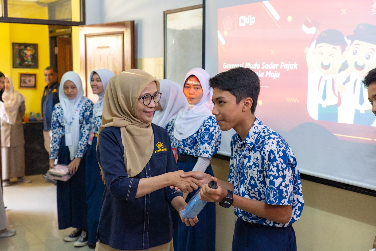 Kantor Pelayanan Pajak (KPP) Pratama Jakarta Kebon Jeruk Dua bersama dengan KPP di lingkungan Kantor Wilayah (Kanwil) Direktorat Jenderal Pajak (DJP) Jakarta Barat menyelenggarakan kegiatan Pajak Bertutur dengan tema “Generasi Muda Sadar Pajak untuk Indonesia Maju” di Aula Sekolah Menengah Atas (SMA) 1 Barunawati, Jakarta Barat (Rabu, 27/8).