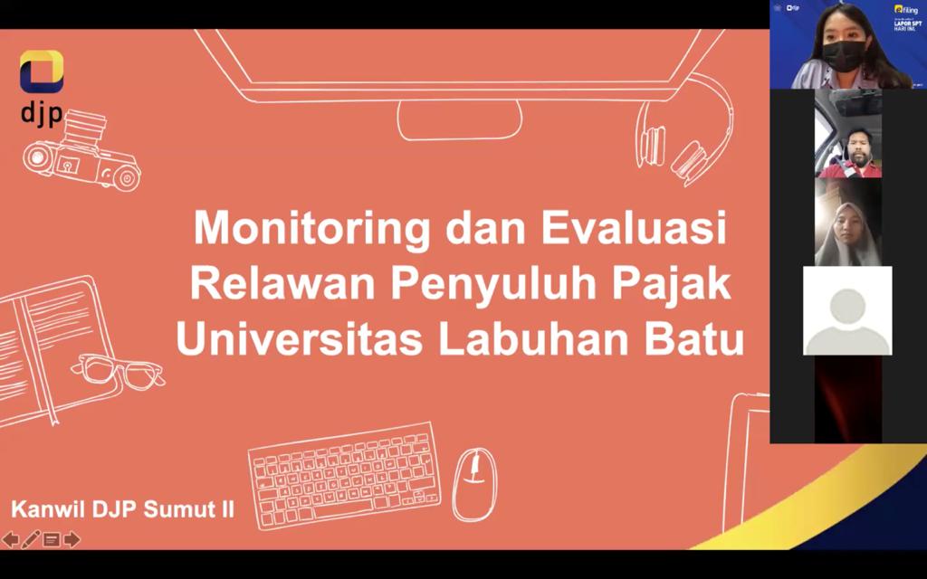 Kantor Wilayah Direktorat Jenderal Pajak Sumatera Utara II (Kanwil DJP Sumut II) mengadakan kegiatan pengawasan/pemantauan terhadap para relawan pajak dari Universitas Labuhan Batu secara daring melalui aplikasi Zoom Meeting di Pematang Siantar (Rabu, 28/4).