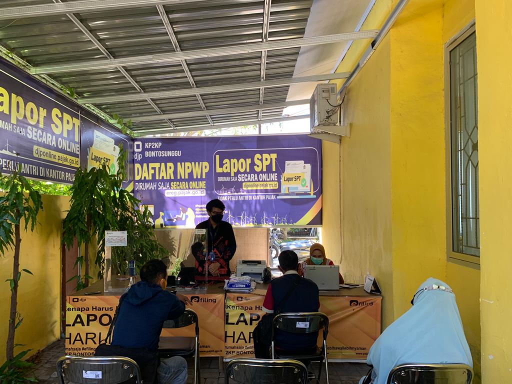 Kantor Pelayanan, Penyuluhan, dan Konsultasi Perpajakan (KP2KP) Bontosunggu melakukan penyuluhan langsung kepada wajib pajak baru berupa informasi terkait layanan asistensi pembuatan kode billing melalui media WhatsApp (Selasa, 19/10). Penyuluhan ini dilakukan oleh petugas KP2KP Bontosunggu di loket Tempat Pelayanan Terpadu (TPT) KP2KP Bontosunggu, Kabupaten Jeneponto.