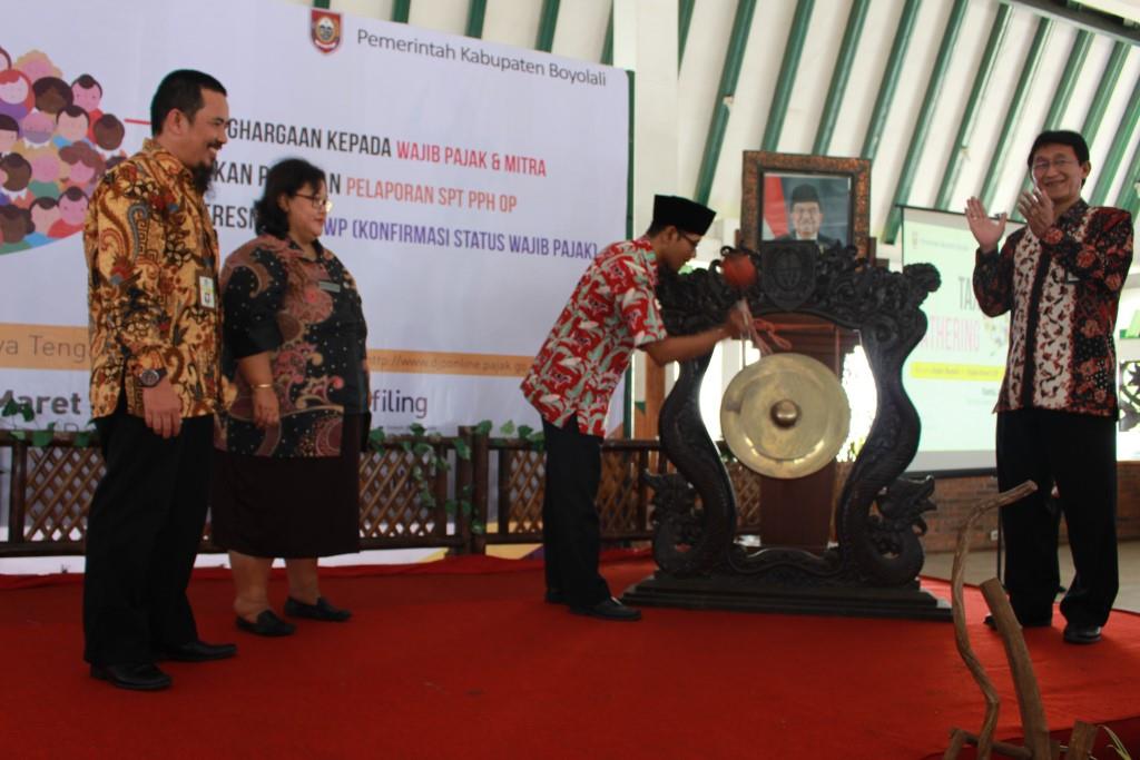 Tax Gathering Kantor Pelayanan Pajak (KPP) Pratama Boyolali liputi Pekan Panutan Penyampaian SPT Tahunan PPh OP, Penghargaan kepada Wajib Pajak, dan Penandatanganan Konfirmasi Status Wajib Pajak (KSWP) yang digelar di Pendopo Ageng Kabupaten Boyolali (Kamis, 22/2).