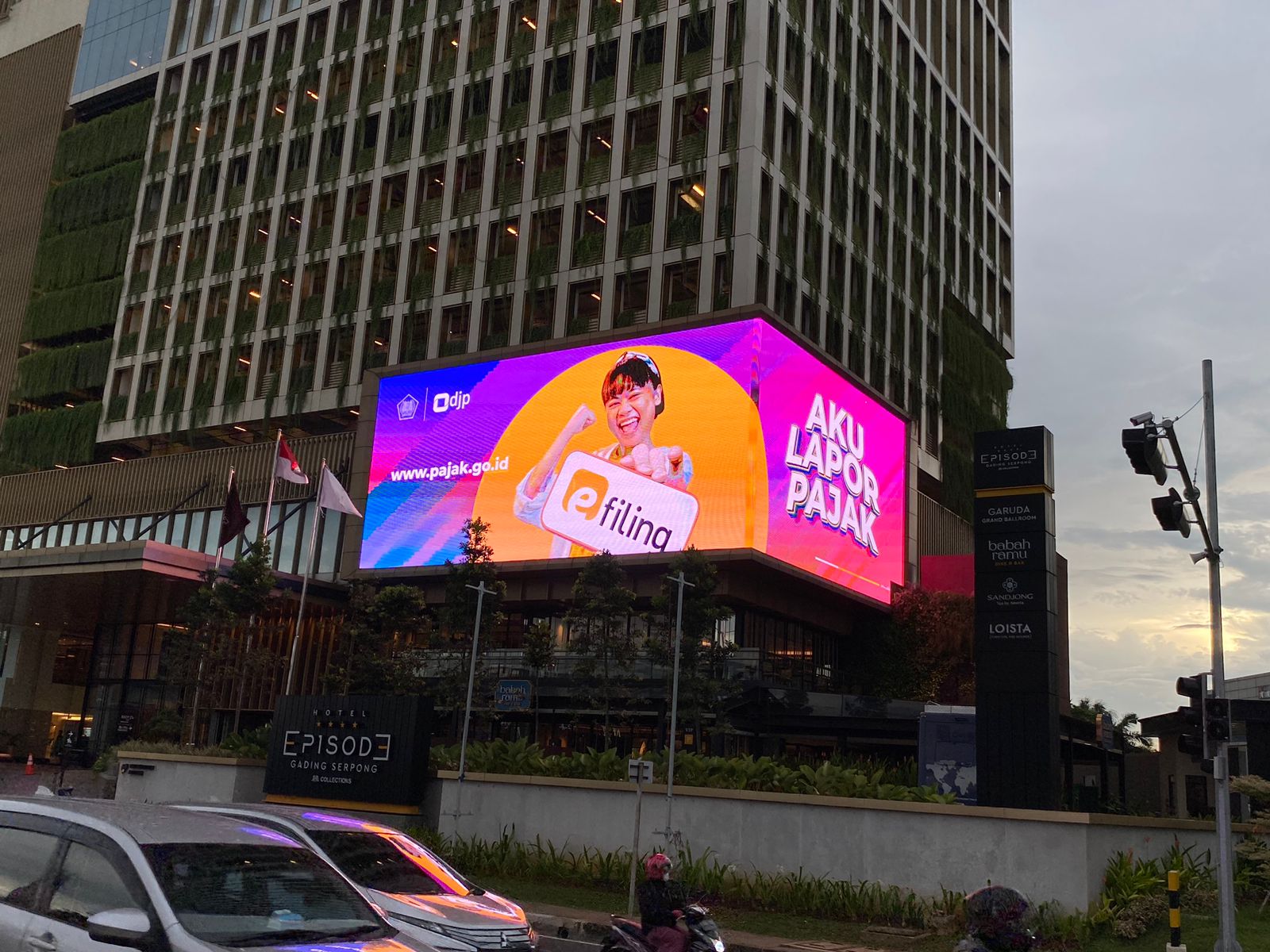 "Kemarin banget kita sudah menghubungi pihak JHL Solitaire dan juga udah dapat kesepakatan terkait pemasangan iklan layanan masyarakat di videotron The Episode Hotel. Pemasangan iklan ini diharapkan dalam meningkatkan kepatuhan masyarakat, khususnya Wajib Pajak KPP Madya Dua Tangerang dalam melaporkan SPT Tahunannya, apalagi mengingat batas lapor SPT Tahunan Orang Pribadi cuma sampai tanggal 31 Maret aja,” tambah Dedi.